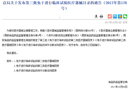 医疗器械咨询 根据国家食品药品监管总局2017年10月31日布关于第二类医疗器械免临床试验目录《第三批》如下: