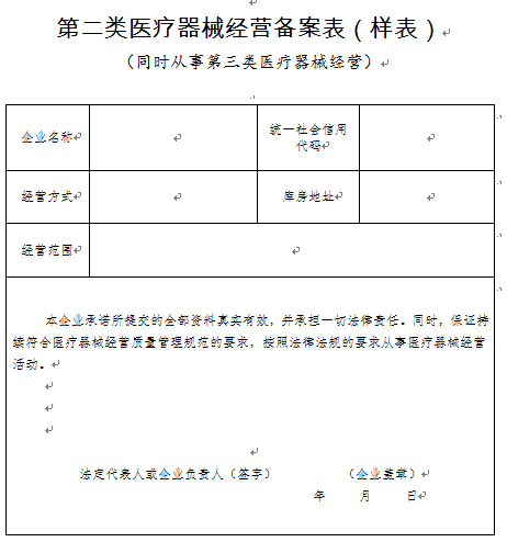 附件:第二类医疗器械经营备案表(同时从事第三类医疗器械经营)