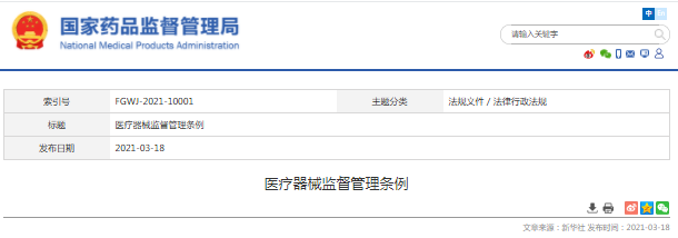 医疗器械咨询据国家药监局2021年3月18日发布《医疗器械监督管理条例》新修订版,具体内容如下: